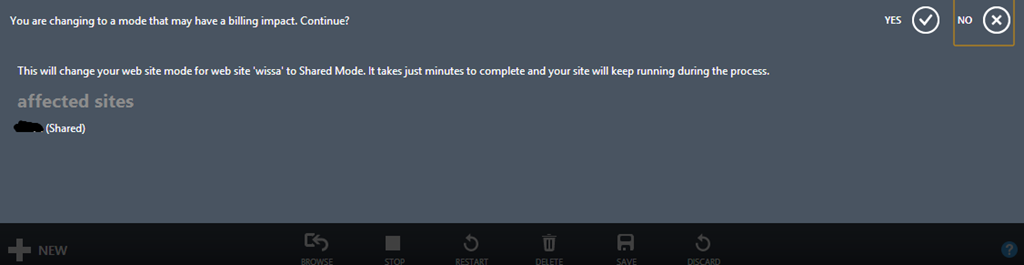 Now that everything is up and running you may wish to point a custom domain name to your azure website. Custom domains for Windows azure websites are only available if you use the Shared or Reserved modes. If you want to keep using the Free mode you can only access your website using *yoursite.azurewebsites.net. *However, if you have an MSDN subscription then you may still be able to host on Windows Azure for free depending on the MSDN subscriber benefits you have included.